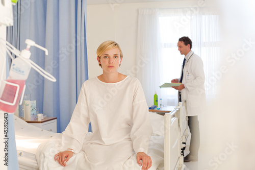 © KOTO, Fototapeta premium Patient wearing gown on hospital bed