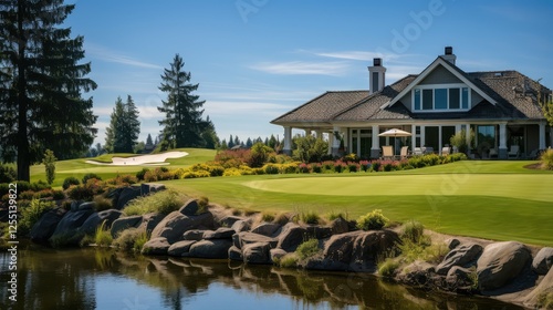 © vectorwin, Obraz premium patio house on golfcourse