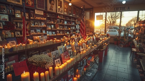 © SuriyaPhoto, Obraz premium Patriot Day Tribute Display in Community Center Honoring Remembrance