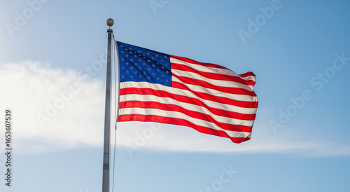 Fototapeta premium Patriotic image of the american flag waving proudly on a flagpole, suitable...