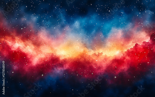 © Shalitha, Naklejka premium Patriotic Watercolor Background with Red, White, and Blue Design