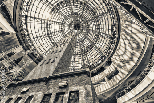 © jovannig, Obraz premium Patrząc w górę obok wieży strzałowej na kopułowym dachu Melbourne cent