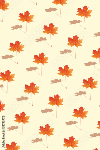 Fototapeta premium Pattern autumn maple leaf orange-red on yellow background in vertical format
