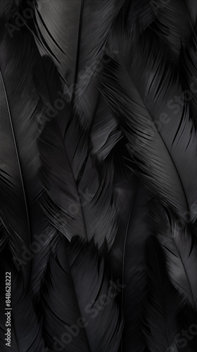 © LeoArtes, Obraz premium Pattern Background Abstract Image, Black Bird Feathers, Texture, Wallpaper, Background, Cell Phone Cover and Screen, Smartphone, Computer, Laptop, Format 9:16 and 16:9 - PNG