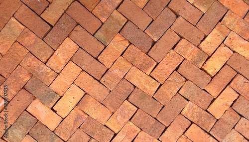 Fototapeta premium pattern background with brick wall or bricks floor pavement in garden.
