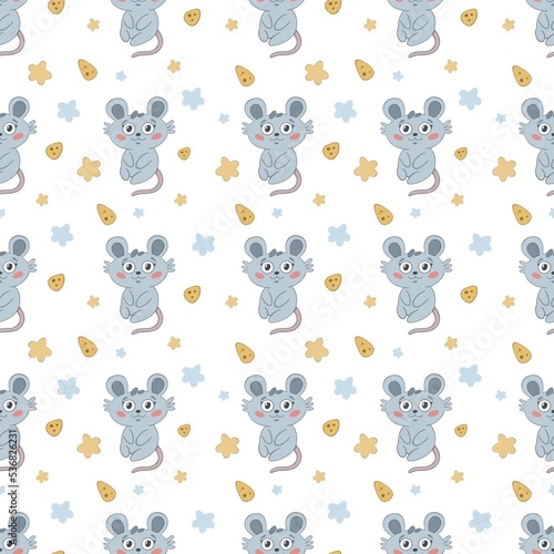 Obraz premium pattern cute blue mouse with cheese on a white background