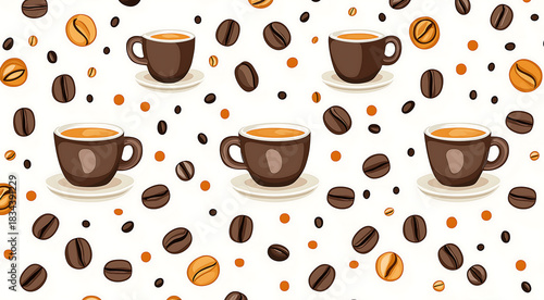 Fototapeta premium Pattern design featuring coffee cups and coffee beans in various shades