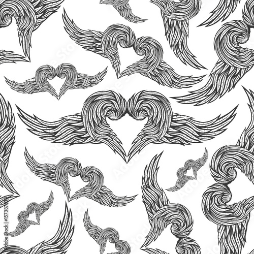Obraz premium Pattern for seamless background with hearts and wings.
