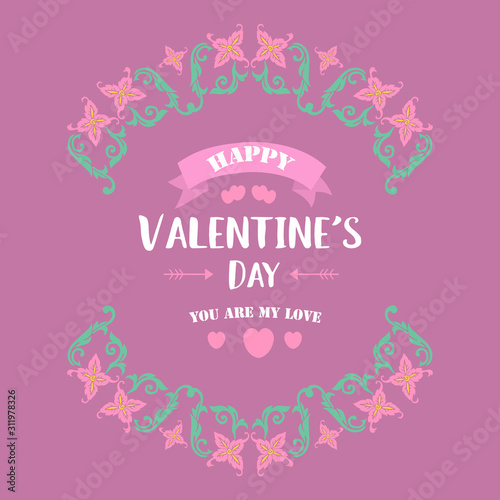 © StockFloral, Naklejka premium Pattern leaf and floral frame elegant, with magenta background, for happy valentine poster design. Vector