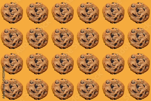 Fototapeta premium Pattern of American cookies with a chocolate crumbs