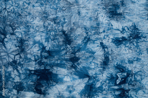 Fototapeta premium Pattern of blue tie batik dye on cotton cloth, Dyed indigo fabric background...
