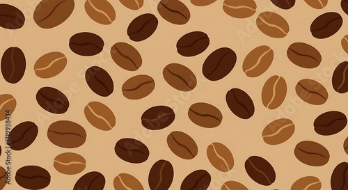© 培 余, Obraz premium Pattern of coffee beans on a beige background