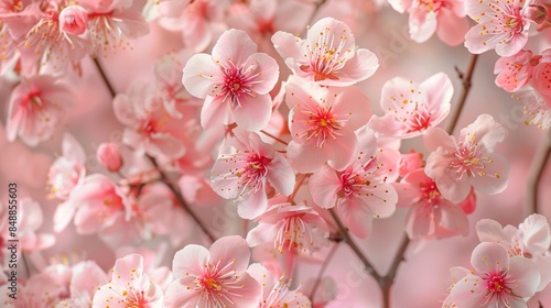 Obraz premium Pattern of delicate cherry blossoms in bloom.