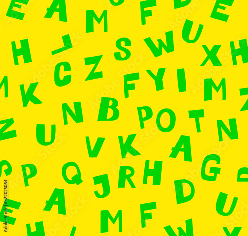 Fototapeta premium Pattern of green Latin letters on a yellow background. Ornament for paper...