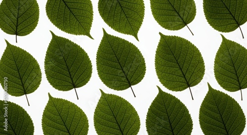 © Ulyana, Fototapeta premium Pattern of green leaves on white background