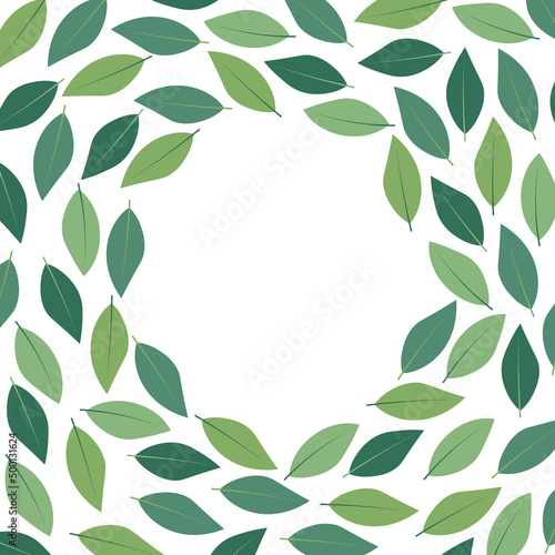 © chrupka, Naklejka premium pattern of green leaves on white background with circle place for text- vector illustration