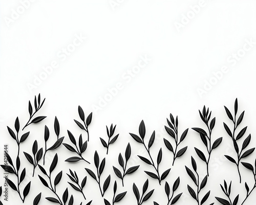 © Nadiyah, Naklejka premium Pattern of Leafy Black Plants on White, Use as Background for text or image generative AI