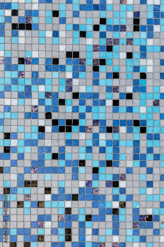 Fototapeta premium pattern of mosaic in blue colors with small square stones