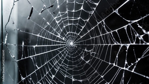 © ArtificialHorizons, Obraz premium Pattern on shattered glass. Damage to the glass. Broken or harmed background on a glass surface.
