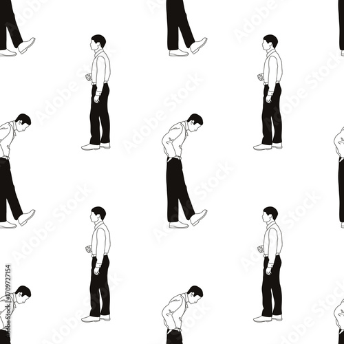 Obraz premium Pattern silhouettes of people drawn by brush. Brush strokes in the form of black silhouettes of people,silhouette of man on white background.