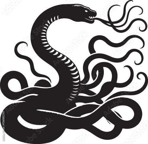 © Fozley, Obraz premium Pattern Snake, octopus silhouette colour vector style with white background