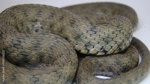 © Dr.MYM, Obraz premium Pattern water snake skin abstract. textured on a white background. snake isolated. Closeup of water snake is a non venomous. Veterinarian exotic. Veterinarian wildlife. veterinary medicine. Reptile.