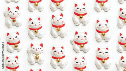 © Nurul, Obraz premium pattern with cats, japanese style pattern vector