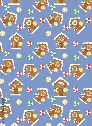 © Alinyara, Obraz premium pattern with christmas gingerbread house