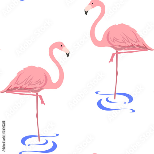 Fototapeta premium pattern with flamingos stand in water