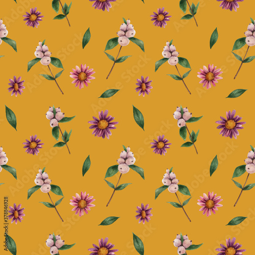 Obraz premium Pattern with flowers and watercolors