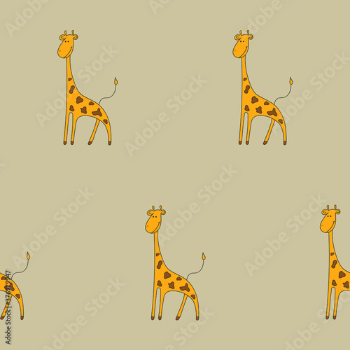 © Tatyana, Naklejka premium Pattern with giraffes on a beige background