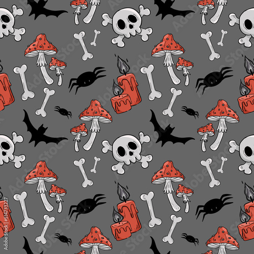 © Екатерина Завьялова, Naklejka premium Pattern with illustrations on the theme of Halloween. Vector illustration