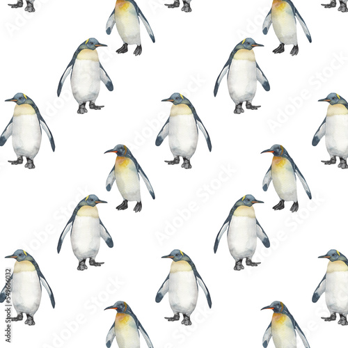 © Makarova Art, Fototapeta premium Pattern with penguin isolated on white background.For invitation and cards.