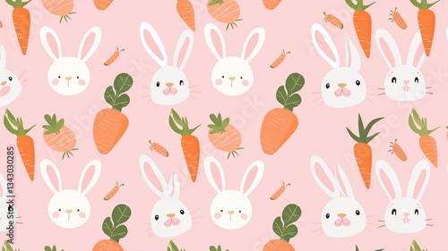 © Pixora Labs, Obraz premium pattern with rabbits and carrots, background