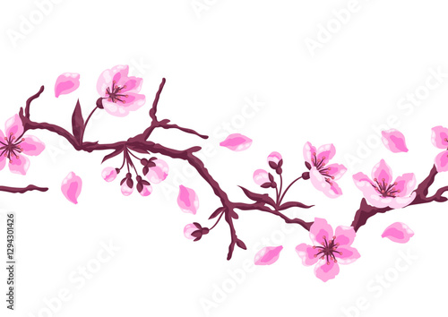 Fototapeta premium Pattern with spring flowers. Apple, sakura or cherry blossom. Beautiful decorative blooming plants.