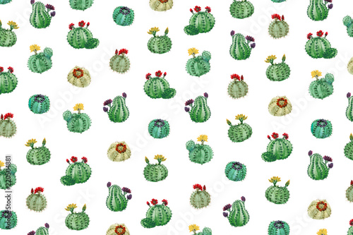 © Metamorphosa, Obraz premium Pattern with watercolor cactuses on white background.