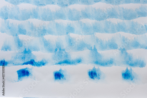 © eugen, Fototapeta premium patterned background in cobalt blue watercolor - applied randomly with the flat side of a bristle paint brush on standard sketchbook paper in rows - photo top-down or flat lay style with free s