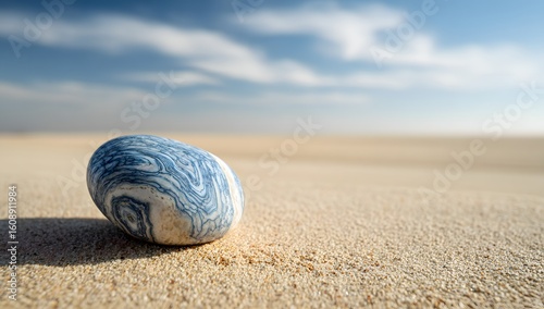 © Jay, Obraz premium Patterned blue stone on desert sand under clear sky