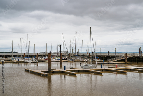 Fototapeta premium Pauillac over Gironde Estuary, Bordeaux, Gironde, Nouvelle-Aquitaine, France,...