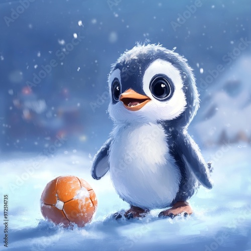 Naklejka premium Paul the Pinguin with another Pinguin playing a ball, Stock