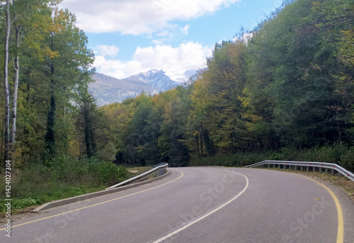 © NAIL BATTALOV, Fototapeta premium paved highway in a mountainous area in early autumn with panoramic views