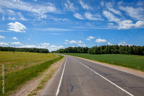 Fototapeta premium paved highway with blue sky and clouds
