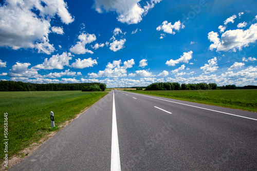 Fototapeta premium paved highway with blue sky and clouds