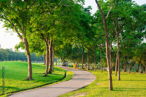 Fototapeta premium Paved path curving through the park. Peaceful pathway.