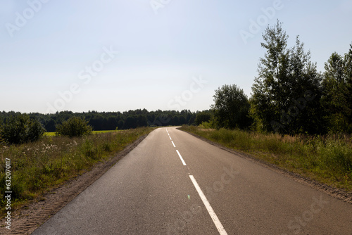 Naklejka premium Paved road through the forest