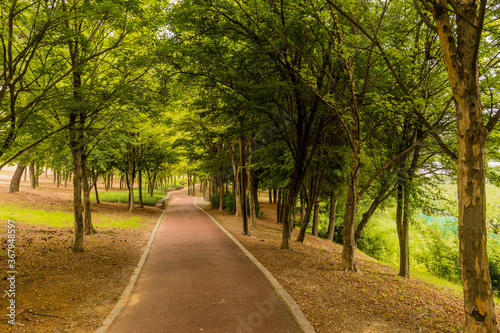 © aminkorea, Obraz premium Paved walking path under shade trees