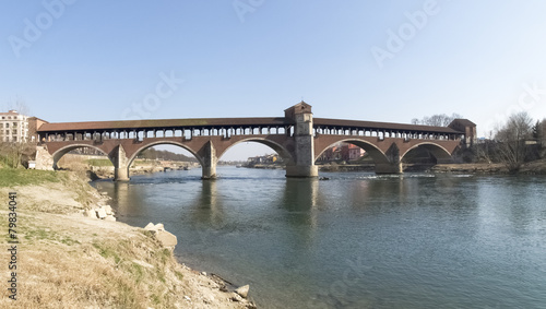Fototapeta premium Pavia, covered bridge over the river Ticino