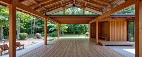 Fototapeta premium pavilion design incorporates naturally durable woods with elevated floor for...