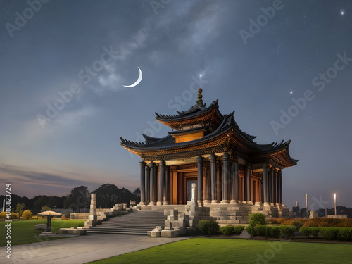 © Quranmeri, Fototapeta premium pavilion in the garden,Ai generated