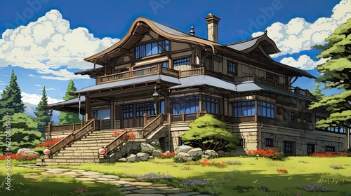© Дима Пучков, Obraz premium Pavilion on the river. AI generated art illustration.